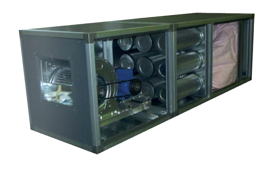 Air cleaner with fan, 1280x1850x1280 mm, 400 V, 12000 m �, 4 kW, 840 rpm, 420 kg, 1,5 m �, optimally qualified for restaurants, diners, butcher, etc.