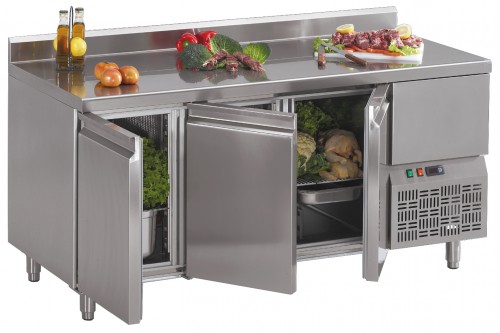 Counter ventilated cooling 1755x700x850 mm, with upstand 100 mm, 405 l, 3 doors refrigerated, temperature range -2°C/4°C automatic defrost, digital control unit, 230 V