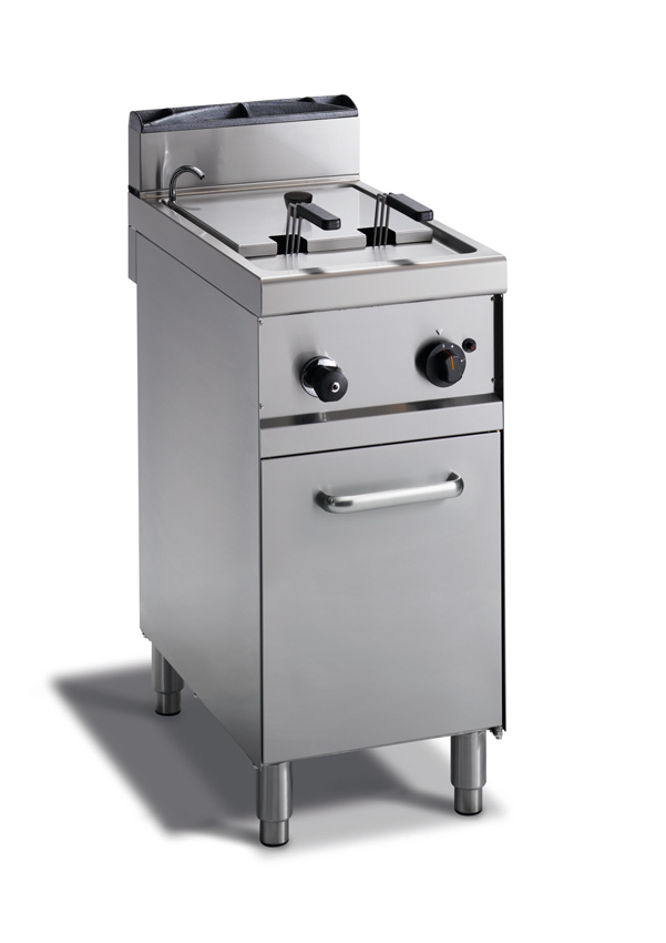 FrançaisGas pasta-cooker on cabinet closed by a shutter door.