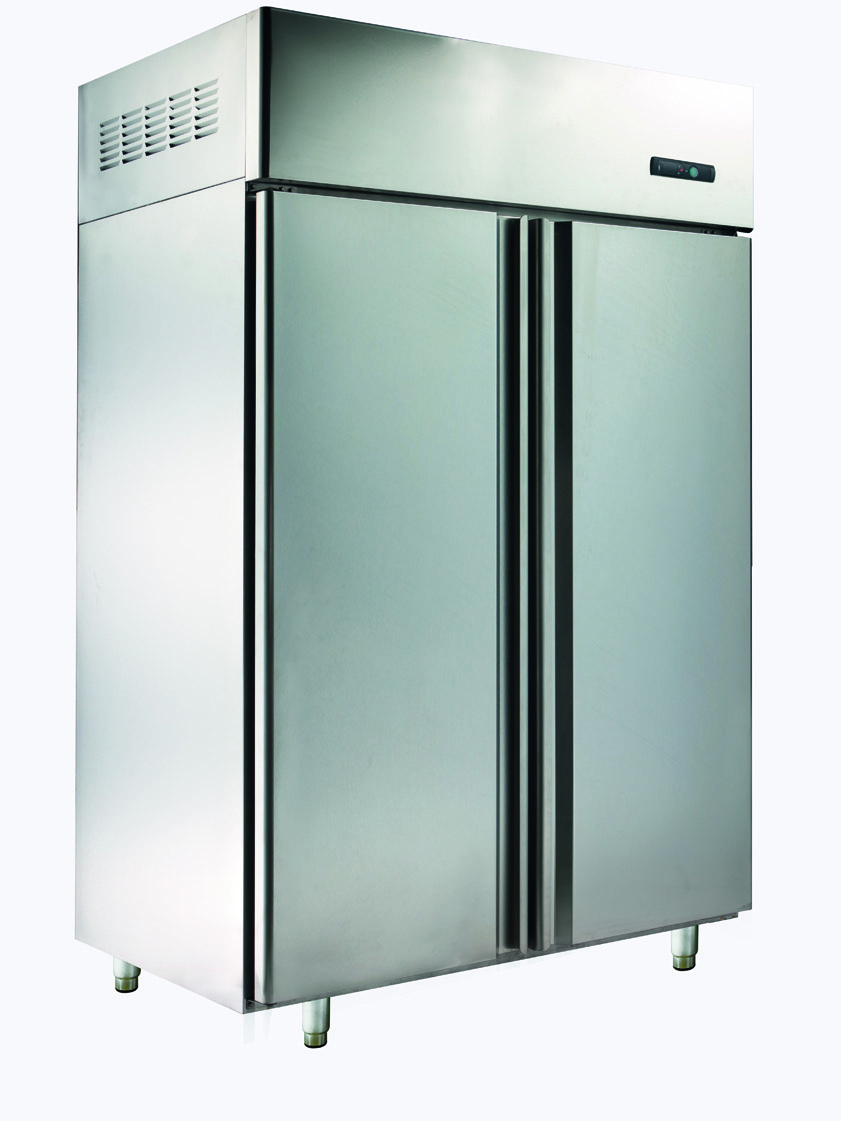 Chiller, 1215x680x1930mm, 890 l, refrigerant: R134a temp. -2°C/+10°C, power: 550 W, 220 V, 50 Hz, 150 kg/160 kg vantilated cooling internal and external made of stainless steel, auotmatic defrost and discharge water, 70 mm thickness polyuerthane isulation, back side zinc plate, heating wire prevents condendation, high level compressor, door lockable
