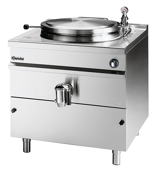 Français| Models made of 1,2 - 1,5 mm thick CNS 14301 Kettle made of 2 mm thick CNS 14404 With tap for warm and cold water Branch for water 10 mm Funnel fittings with safety valve (calibrated to 0,5 bar) for pressure monitoring and outlet valve 3 possible switch settings "0" Off, "1" Partial load 50 %, "2" full load 100 % Automatic switch off in case of interferences Thermostat for regulating the cooking temperature Automatic water-level control in intermediate jacket |