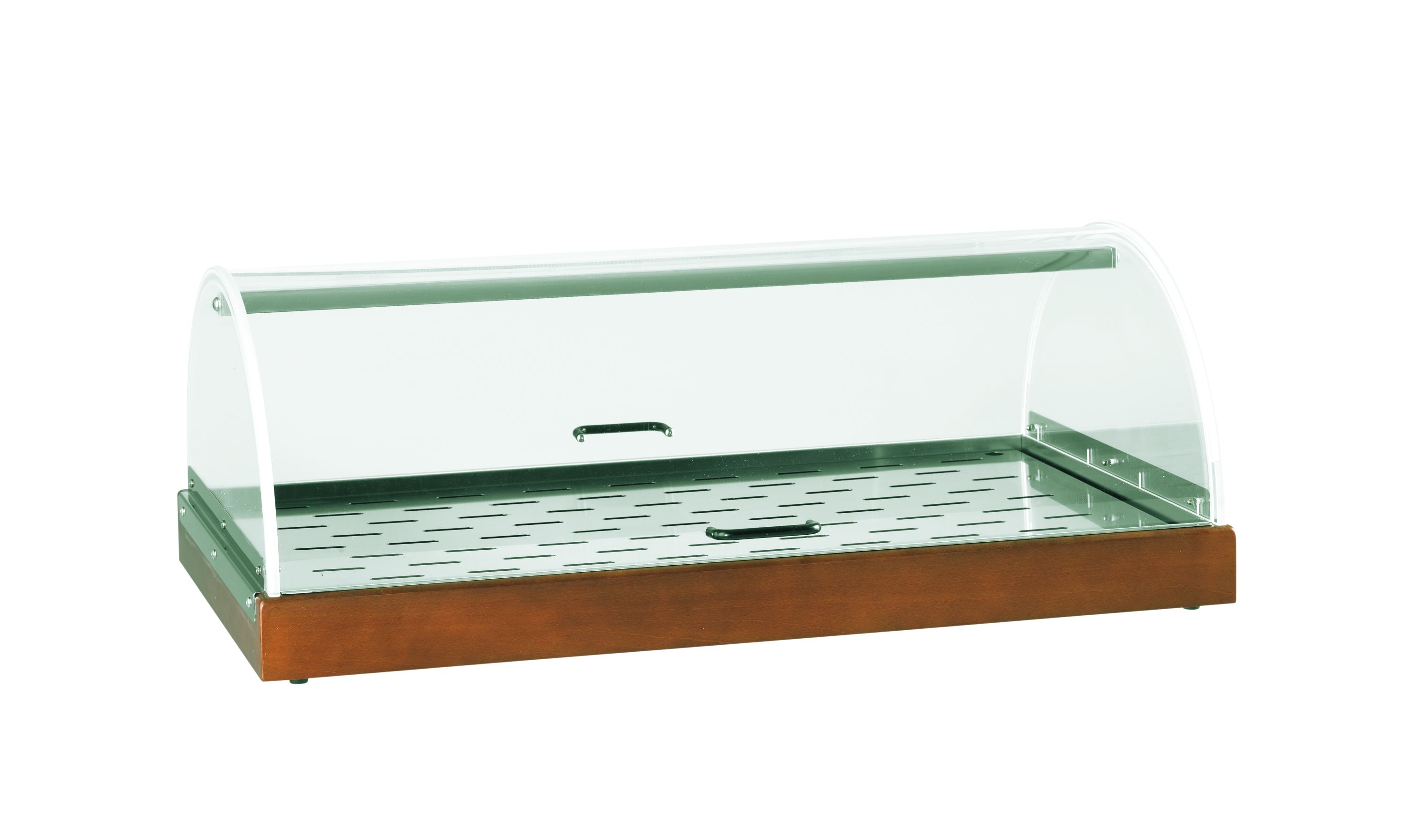 Set for appetizers, sweet and cheeses - refrigeration available -, including a solid wood shelf with semicylindrical dome opening on both sides, grid and housing for eutectic plates (Item 6100H) Max. dimensions: cm 93x53x35 h