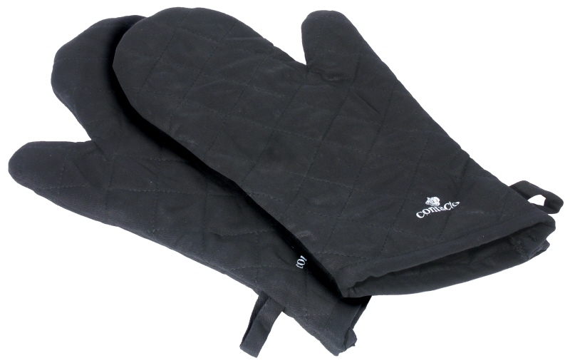 Oven Mitts black quilted cotton, washable up to +40°C, flame retardant