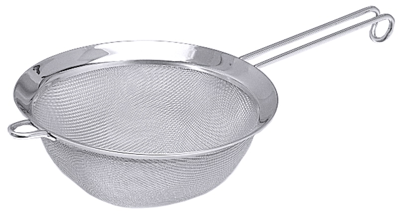 Strainer stainless steel, mirror polished edge, fine mesh (8 holes/cm)