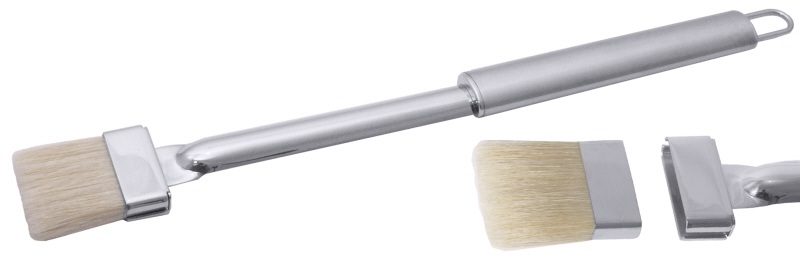 Barbecue Brush 18/10 stainless steel, mirror polished with satin polished oval handles, replaceable brush made of natural bristles, material thickness: 1.5 mm, heavy gauge