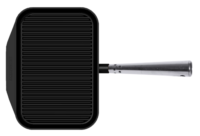 Poêle grill rectangulaire en fonte, avec poignée en acier inoxydable 18/10